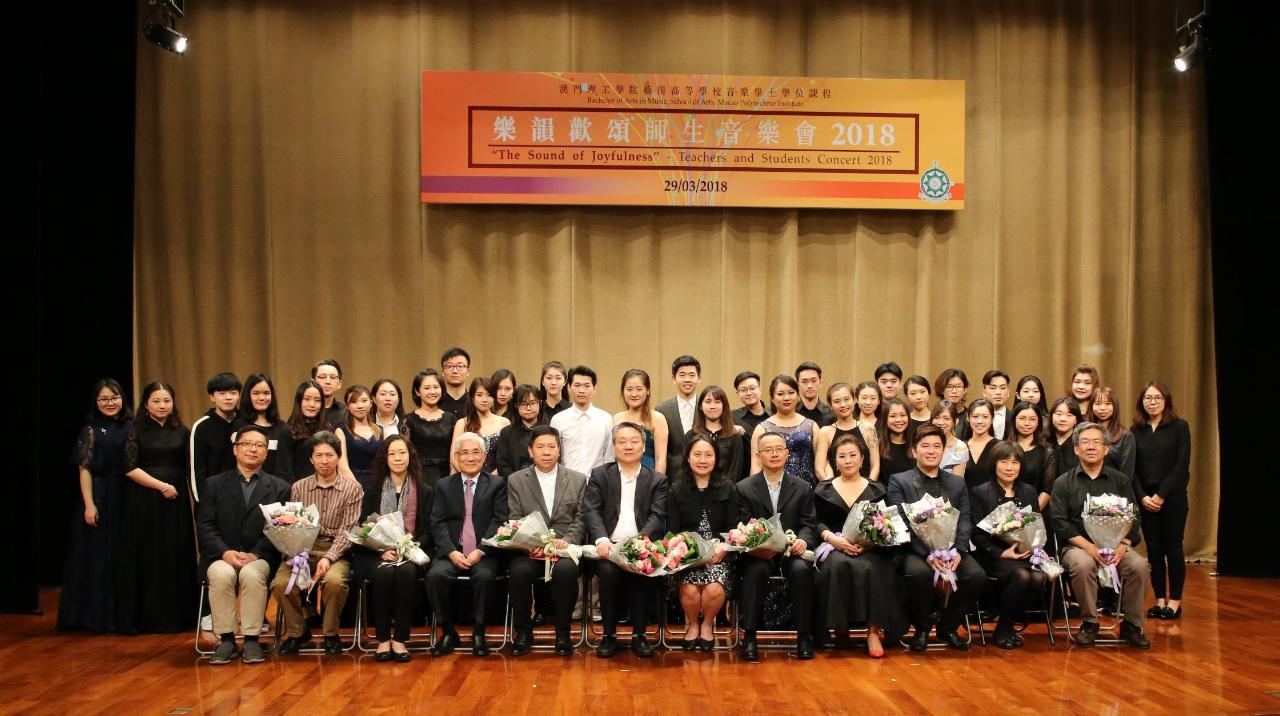 2018年3月29日晚,澳門理工學院藝術高等學校音樂課程2018年度 “樂韻歡頌師生音樂會” 在理工學院禮堂順利舉行。一年一度的師生音樂會是音樂課程的重要藝術實踐活動,為學生展現藝術表演才華提供舞台,並有和表演專業教師同台演出學習的機會。本年度的師生音樂會同時也是 “第三屆澳門理工學院藝術節” 的系列活動之一。