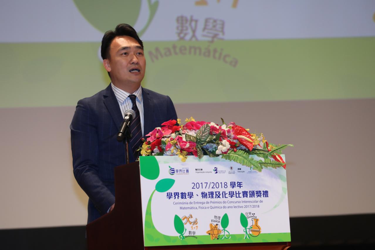 由教育暨青年局及澳門大學合辦的 “2017年澳門高中學生化學競賽” 、 “2018年澳門中學物理競賽” 及 “2018年校際數學比賽” 已順利完成。為表揚獲獎學生在該三項學科比賽中的努力,主辦單位於2018年4月22日下午假澳門大學會堂舉行了2017/2018學年學界數學、物理及化學比賽頒獎禮,分別有217名學生和39名老師獲獎。