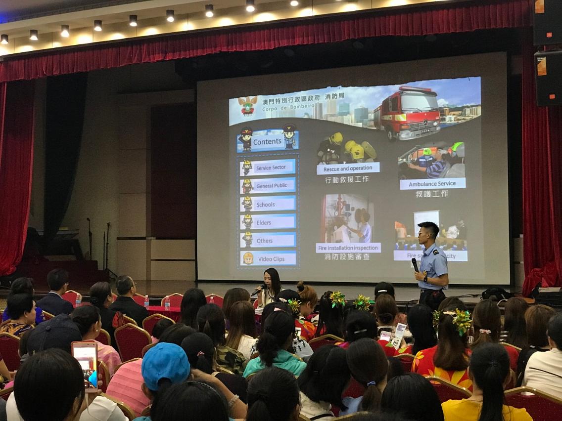 為提高在澳工作的東南亞裔外地僱員的消防安全意識和民防意識,減少事故意外發生,在民眾建澳聯盟社區消防安全主任的協助下,於2018年4月29日,警察總局及消防局與民眾建澳聯盟合辦了“民防講座”和“消防安全知識講座”,藉此加強外僱在防災應急、家居防火、救護和正確使用燃氣爐具等知識,以及提高遇到火警時的應變能力。
