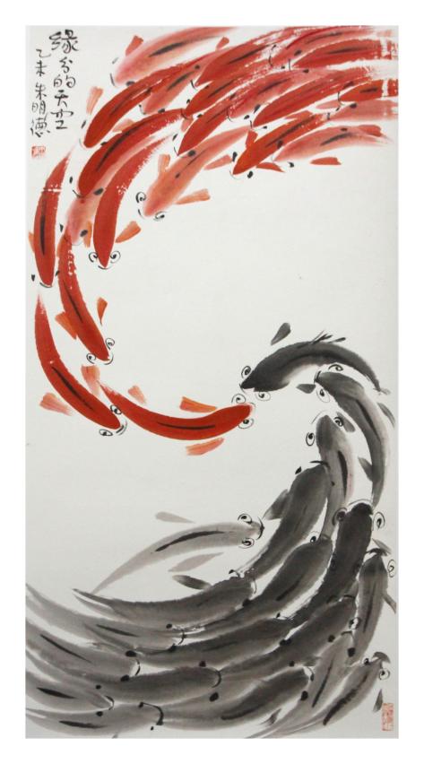 朱明德,中國美協七屆理事,中國書協會員;曾任北京市社會科學院黨組書記、院長。北京市文聯黨組書記、常務副主席,北京師範大學北京文化發展研究院教授、副院長,朱明德中學時即心尊齊白石為心師,入伍時攜帶《齊白石水墨藝術》一書,堅持研讀,臨摹學習中國畫。轉業在北京水產部門十三年中,注意學習魚和漁文化,從獨特視角畫大寫意的魚。以水墨魚為載體,表達對社會生活的感悟。朱明德畫魚曾經在北京、上海丶武漢丶長沙丶西安丶鄭州、洛陽以及芝加哥、維也那丶哥本哈拫、莫斯科等城市舉辦個人畫展。出版過《朱明德生活感悟畫》、《朱明德畫魚》等畫集。此次澳門畫展作品主要以“魚”為主,靈動奪目,筆筆有神,點點有聲,給觀者以美的享受。