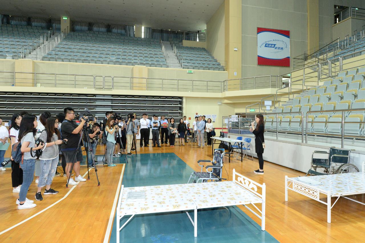 避險中心工作小組成員部門代表,包括教育暨青年局代局長梁慧琪及體育局體育設備管理處處長莫子恆也出席了今天的避險中心介紹活動。