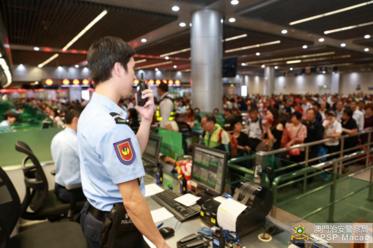 治安警察局領導指示各邊境站主管密切關注出入境人流狀況,並與對口部門保持緊密溝通,同時實施多項措施,加開檢查櫃檯疏導人流,增派保安人員協助維持出入境大堂及車道的秩序,以有效分流旅客;關閘廣場離境大堂入口處亦增派人員執行疏導措施,引導旅客安全有序進入。另外,於關閘及各口岸外圍一如既往作好部署,派駐警員指揮交通以及監察人潮情況,以確保通關秩序,保障市民及遊客的安全。