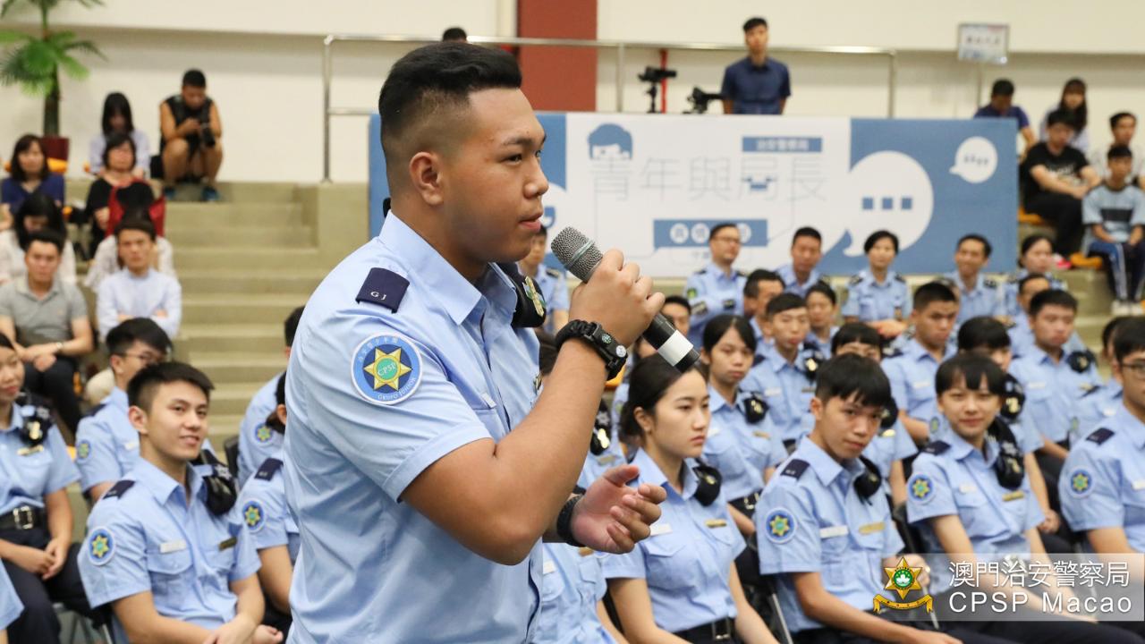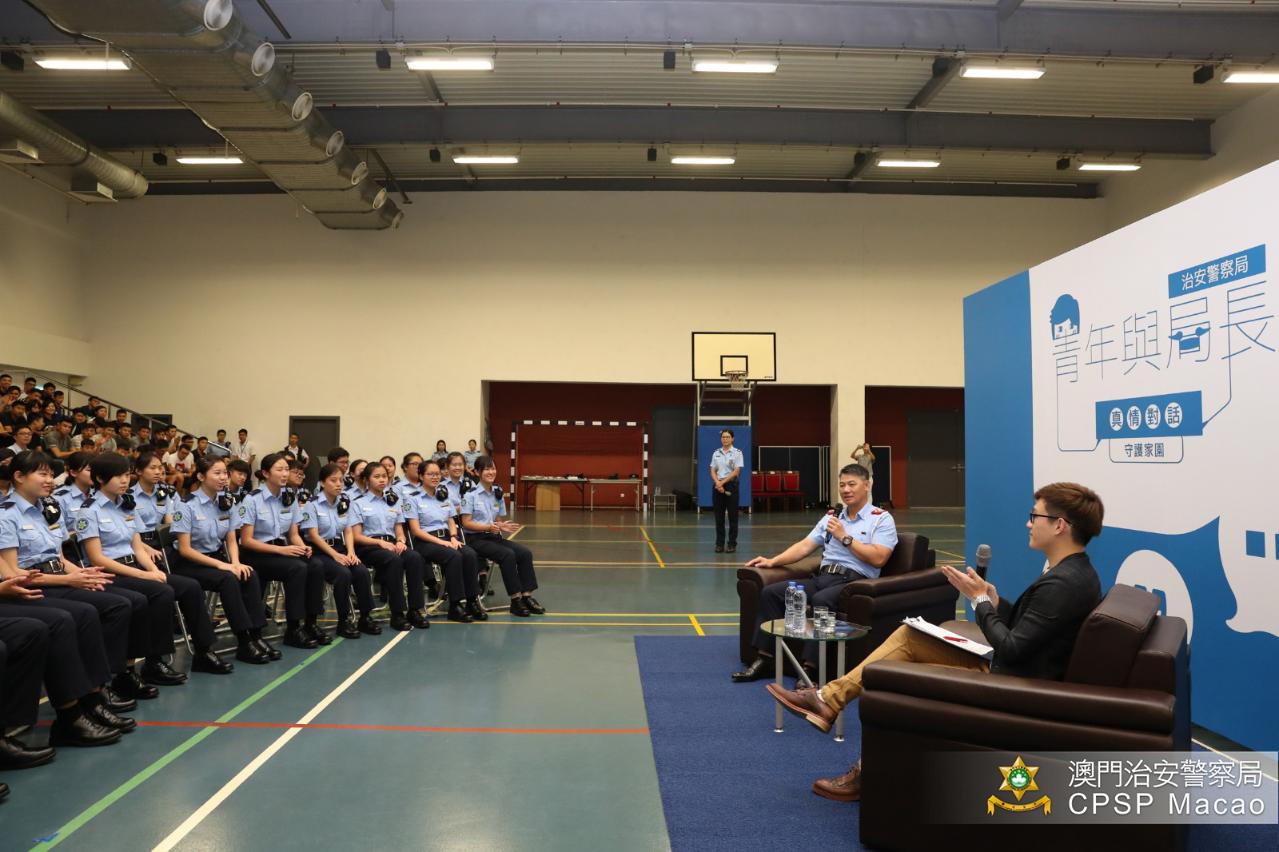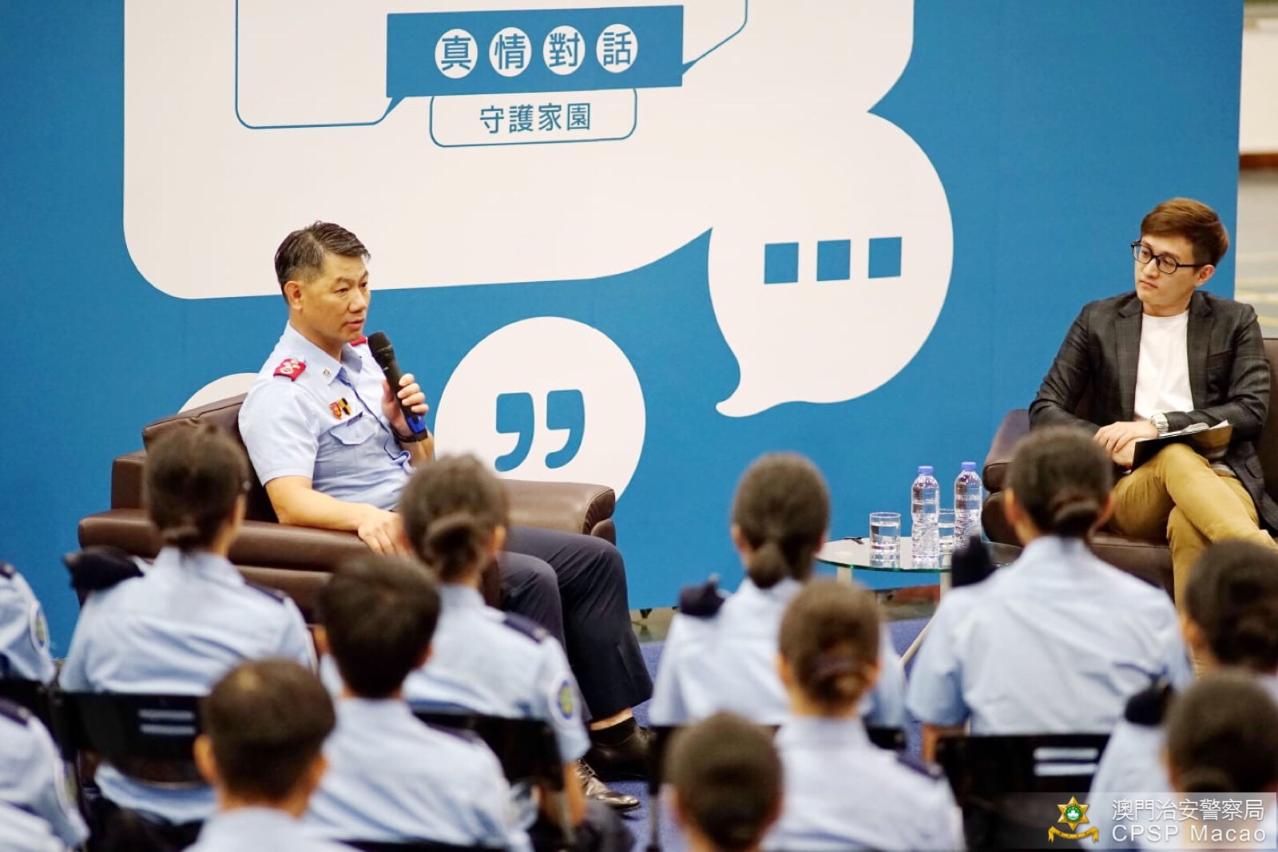 特區政府的「青年與局長真情對話」活動,自開展至今已有二十多位政府部門的領導參與。於9月1日,治安警察局梁文昌局長亦以「守護家園」為題,在氹仔北安出入境事務廳大樓與約六十位學生會面,透過真情對話開展互動交流,希望提高時下青年人熱愛社會和家園的意識,以及增進他們對警察「守護家園」工作的了解、認同和支持。