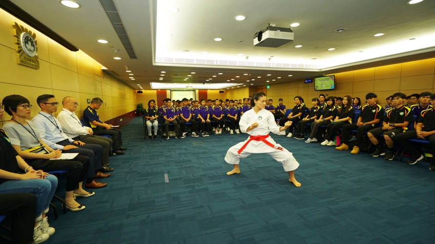 蘇瑞林又即場示範是次亞運比賽中參賽的自選套路,“滅罪小先鋒種子計劃”及“社區安全青年領袖計劃”學員們都感到十分好奇,紛紛向蘇瑞林請教空手道套路起源、競賽規則等,她都一一講解。她又勉勵學員們除了努力讀書之外,亦要勤加鍛鍊身體,希望將來有更多的青少年運動員代表澳門特區,在國際體壇上發熱發亮。