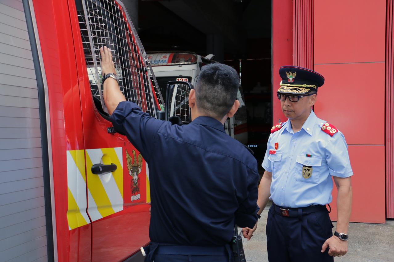 於今日(9月13日),消防局代局長鄒家昌及各部門主管到各消防行動站進行視察,了解各個行動站應對颱風的準備工作,並要求各站人員必須以最高戒備的狀態作應對,不能掉以輕心,充分做好一切的準備工作;同時,鄒家昌代局長亦為各消防站前線人員打氣,並敦促各單位要不怕艱辛,發揮消防局「捨己救人」的精神,保護全澳市民的生命財產安全,而各行動站亦已完成檢查站內所有設施、搶險裝備、通訊設備、救援工具及緊急車輛等,以確保相關系統和設備的正常運作,並作充分的後勤支援保障,如準備飲用水、食物等。