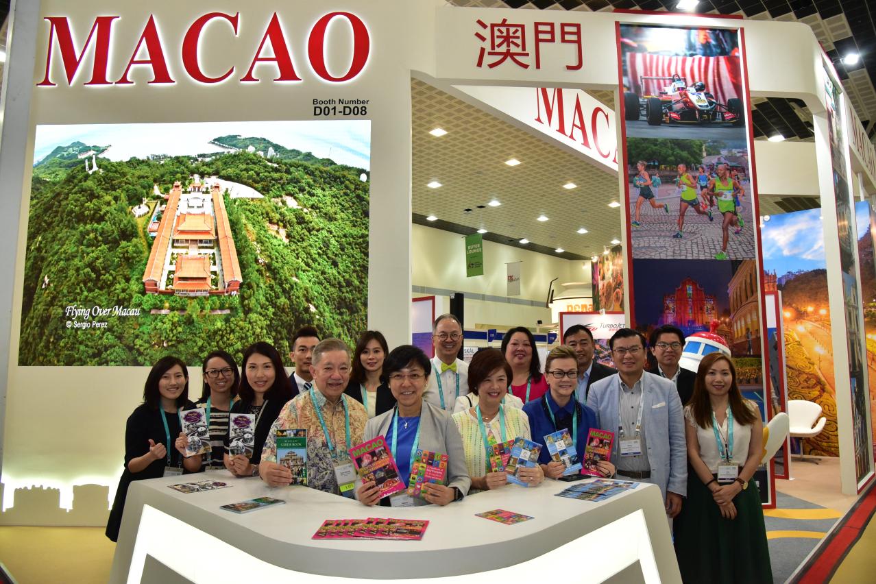 旅遊局的展位以“感受澳門 無限式”為主題,推廣澳門傳統及最新旅遊景點,並提供平台讓本地業界與海外業者相互交流並洽談商機。旅遊局同時在會場外擺放“澳門美食推廣車”,於9月12至14日進行澳門特色美食派發活動,吸引到場的旅遊業者及媒體到美食推廣車免費品嘗澳門美食,推廣“2018澳門美食年”。