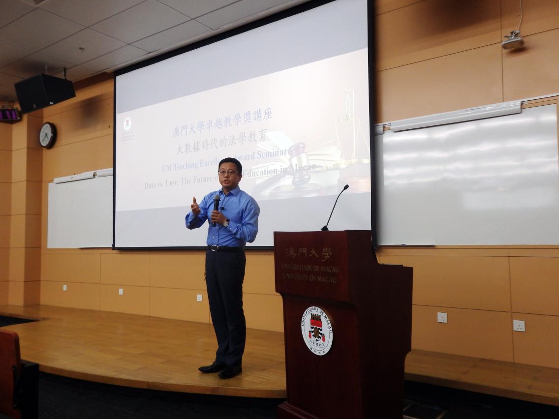 澳門大學今(19)日舉行“澳門大學卓越教學獎"講座,由2017 / 2018學年得獎者、法學院副教授稅兵以“大數據時代的法學教育"為題,探討澳門法學教育如何順應新時代的社會變遷。講座吸引眾多澳大師生、高中教師及公眾參與。