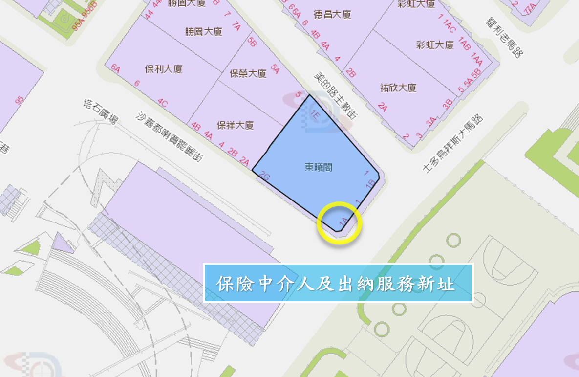 澳門金融管理局“保險監察處保險中介人服務櫃檯”和“貨幣發行及財務處出納櫃檯”,將於11月5日起正式遷往澳門士多鳥拜斯大馬路1號A東曦閣地下(澳門金融學會旁)辦公。有關個人/法人保險中介人牌照申請、領取、資料更新、續期、繳交登記費、持續專業培訓申報、與保險中介業務相關的查詢及投訴等服務,以及金管局所有出納服務均會遷往該址運作。而位於東望洋斜巷 24及26 號金管局行政大樓的中介人服務櫃檯及出納服務,會由同日起停止運作。