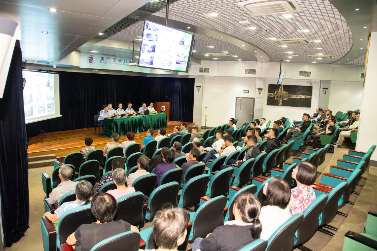 出席是次活動的人員有本校陳國棠副消防總長、麥健強副一等消防區長、澳門海關邱祥熙關務督察、治安警察局劉智超副警司、消防局陳新賢一等消防區長以及社會工作局避險安置組職務主管龍偉雄。人員向參與講座的居民闡明了疏散撤離計劃及防災知識,詳述計劃中「安全有序撤離」、「快速安全撤離」及「緊急逃生疏散」三項撤離措施,並在會上講解前往避險中心時的注意事項、在日常生活中儲備應急物資的重要性、應急包的準備及建議、選擇撤離路線的考慮要素等;又介紹位於澳門半島及離島區的16個避險中心、需扶助人士集合點等資訊,從而令居民更加清晰整個撤離計劃的運作流程。最後,由各部門代表解答居民的提問。