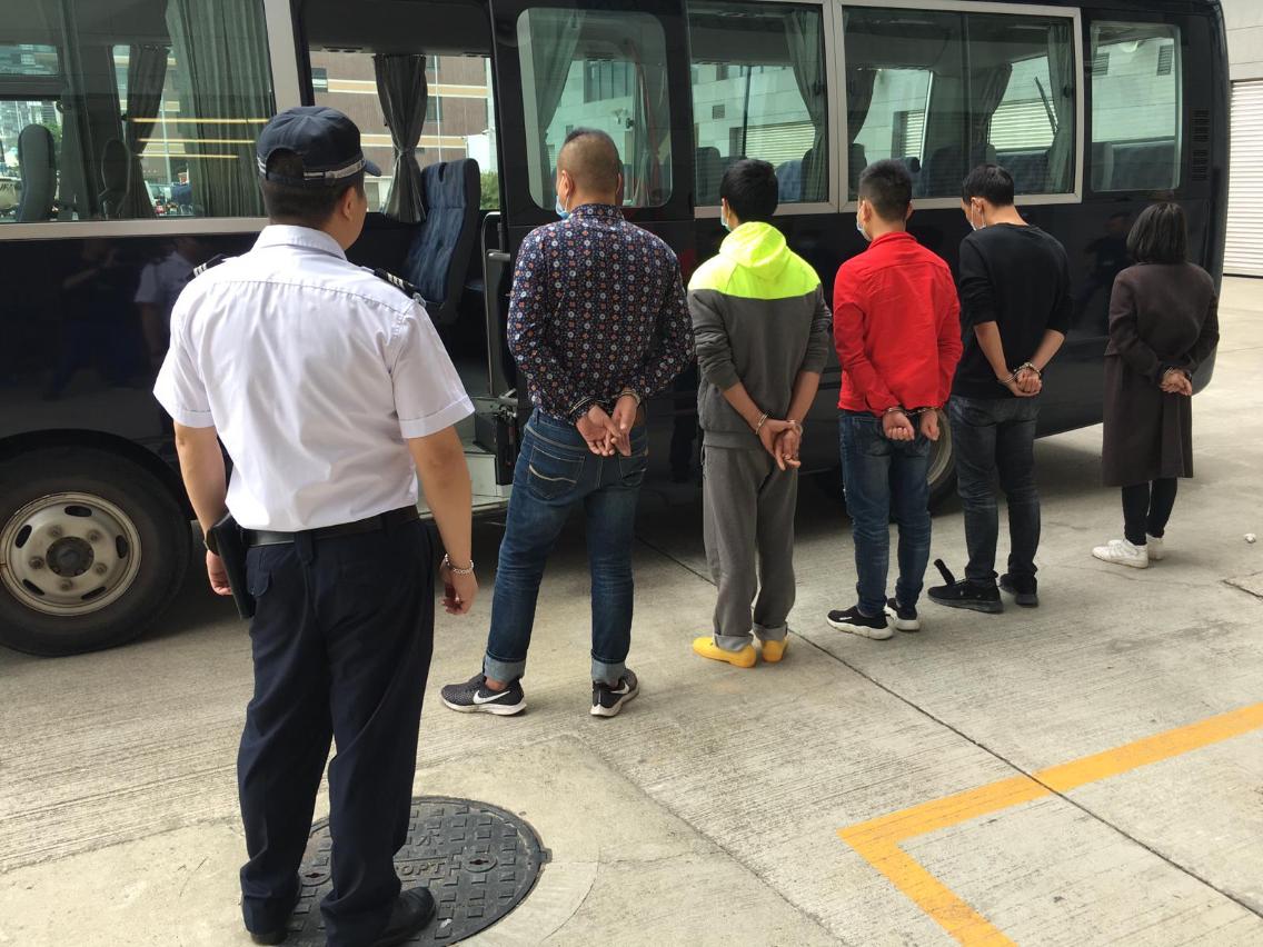 涉案的四男一女均來自內地,年齡介乎23至45歲,當中兩名男子疑為蛇頭,涉嫌觸犯第6/2004號法律第14條『協助』罪,其餘三人為非法入境人士,已全數移送司法機關處理。經審理後,次案中疑為蛇頭之男子被羈押候審,其餘人士則被移送治安警察局處理。