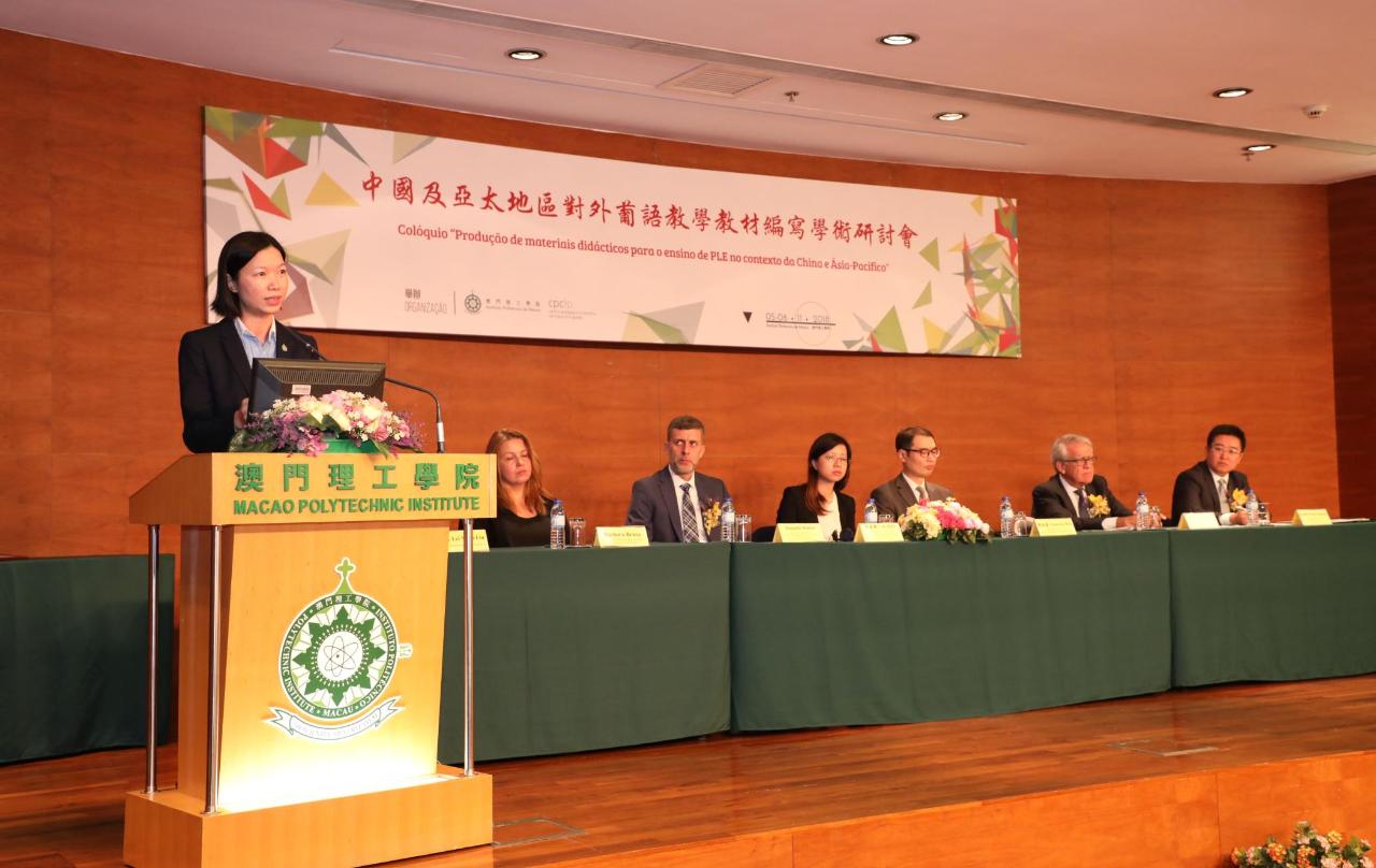由澳門理工學院葡語教學暨研究中心舉辦的“中國及亞太地區對外葡語教學教材編寫”學術研討會,十一月五日早上九時三十分在理工學院匯智樓演講廳舉行。中聯辦教育與青年工作部副處長岑嘉儀、葡萄牙駐澳門及香港總領事代表祖堅·藍慕士(Joaquim Ramos)、高等教育輔助辦公室代表陳家豪、葡萄牙之家代表芭芭拉·布素(Bárbara Bruxo)、葡萄牙科英布拉大學教授卡路斯·安德烈(Carlos André)、理工學院署理院長李雁蓮和澳門理工學院葡語教學暨研究中心主任張云峰主持了開幕儀式。