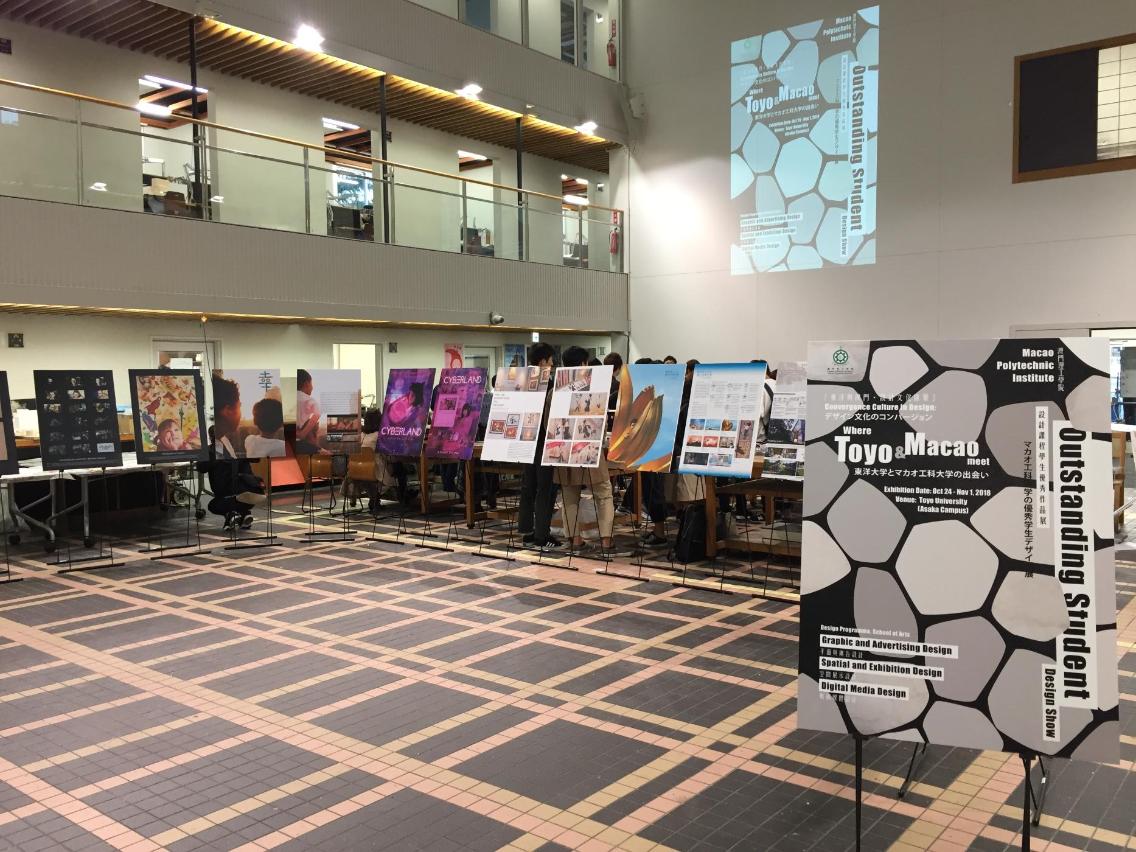 這次展覽,是理工設計學生作品首次在日本展出,旨在推動兩校設計文化創意交流,精選展出了理工藝校設計課程十二位學生最新優秀設計畢業作品,如空間及展示設計、平面及廣告設計、數碼媒體設計,以及動漫造型、商業攝影等類別作品。題材及內容豐富,當中有融合中葡文化以現代皮影玩偶說故事、以澳門場景描繪魔幻現實視覺、以九澳村打造悠閒空間設計、以澳門公教中心再造綠色素食生活空間、反映澳門青年人追夢成長掙扎、探討虛擬與現實世界的社交關係等。這些設計作品代表新一代年青設計學生對澳門文化獨有的視野與特色。東洋大學柏樹良表示,藉此展覽可見澳門理工學院學生設計題材的多元性,以及對視覺傳達、空間再造、數碼媒體的運用都具有相當程度掌握。期望將來兩間院校有更多的跨文化學術交流,讓兩地學生針對共同設計議題,彼此文化激盪創意,以設計思維尋求創新方案,帶動社會設計與文化創意產業發展。