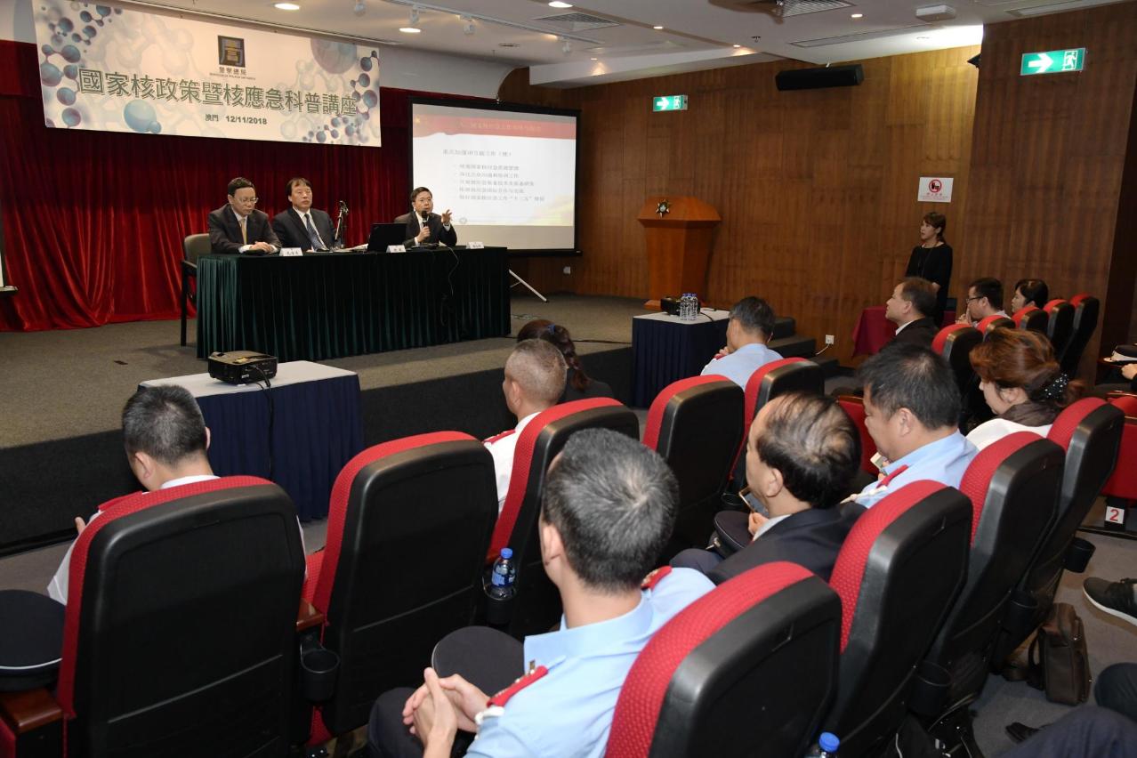 參與是次講座的內地代表,來自國務院港澳事務辦公室、國家核事故應急辦公室、廣東省生態環境廳、核工業航測遙感中心,以及中國廣核電力股份有限公司;而本澳出席的代表尚包括治安警察局局長梁文昌、消防局局長梁毓森、海關副關長吳國慶,以及保安部隊高等學校、氣象局、環境保護局、衛生局、社工局等部門的領導和主管。