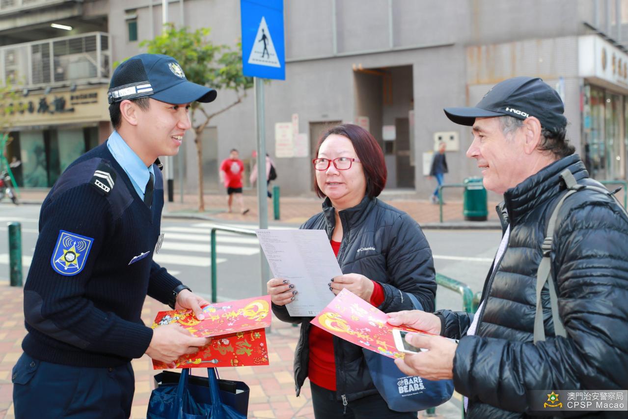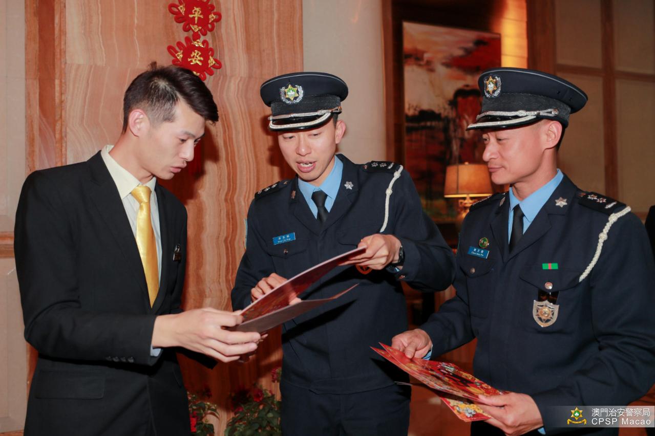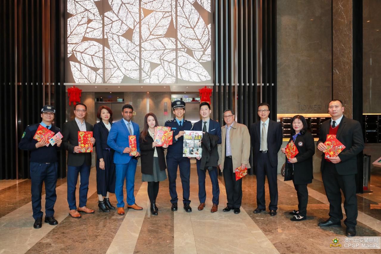 會後,雙方代表到氹仔多個大廈進行冬防宣傳,向巿民送上新年祝福的同時,提醒大廈保安員及住戶應注意的防罪及防盜事項,尤其在農曆新年前及期間,加強對大廈範圍內的巡查,並呼籲居民外出旅遊前做好家居防盜措施,以及切勿在家居或非指定區域燃放爆竹等。
