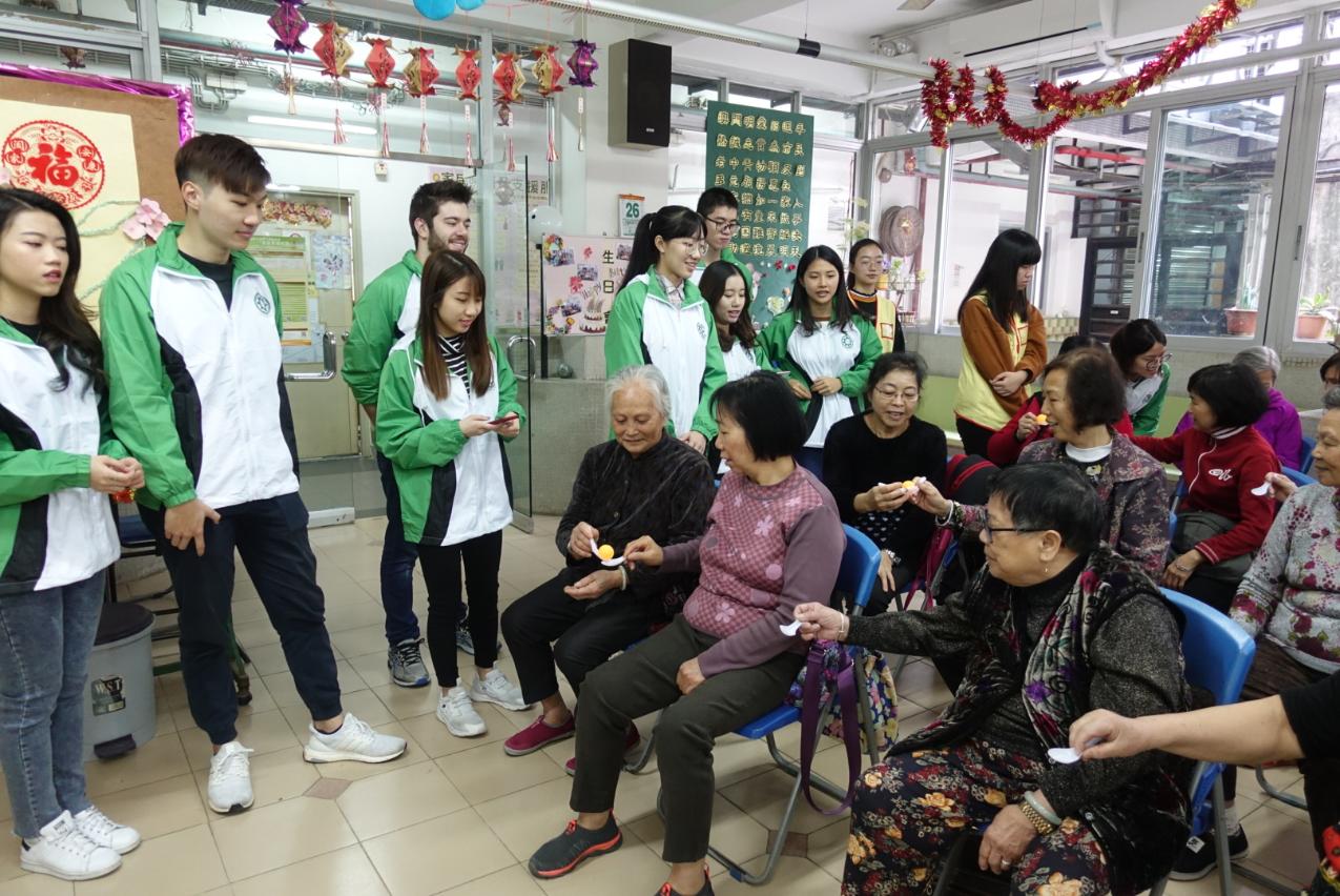 理工學生在進行活動簡介並準備遊戲及敬老禮品後,分組出發前往老人中心進行探訪。學生一行到達後受到四十多名長者熱情接待,隨即展開一系列活動及遊戲,帶領長者進行健身操,示範簡單的伸展運動;活動還包括新春問答環節、乒乓球接力賽及傳球等遊戲。為向長者表達敬意,學生更即場演唱佳節賀年歌及京劇等,讓一眾長者聽出耳油,隨歌和唱拍手。另外,有學生在探訪前親自書寫福字揮春贈送長者慶賀新春,向長者表達關懷。