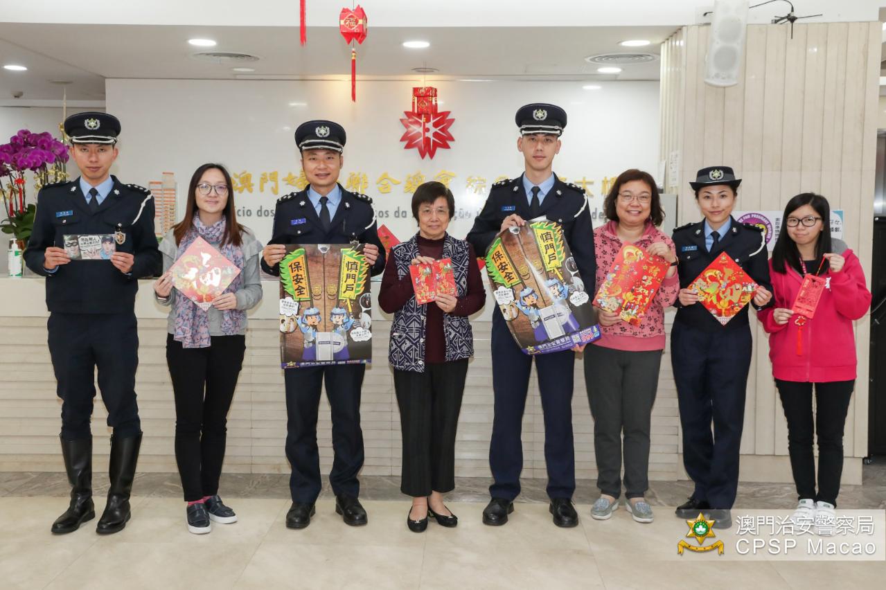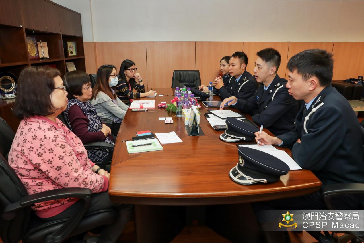 治安警察局林強警司、李英龍警司、岑志納副警司及黎燕鴻副警司,於1月30日拜訪澳門婦女聯合總會副監事長胡婉萍及楊淑賢、家庭服務中心主任朱愛莉及助理主任黃敏兒進行冬防會議。