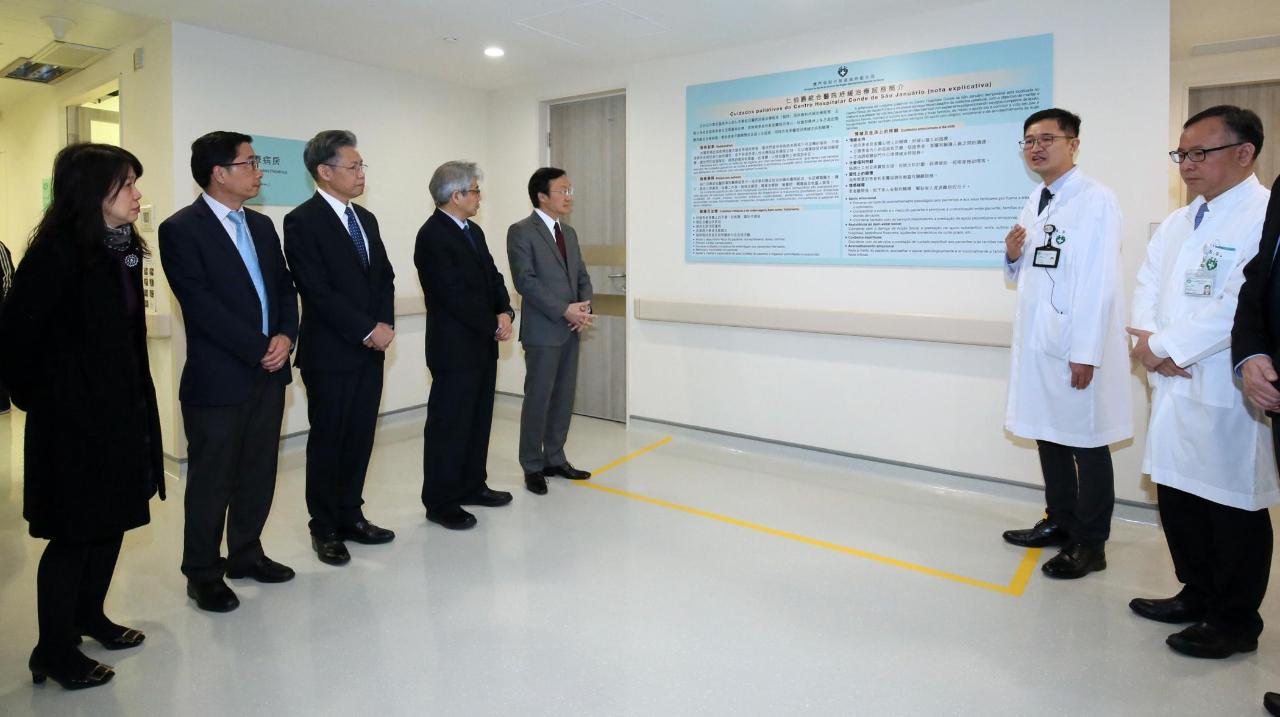 隨著本澳人口老齡化增加,因應紓緩治療之需求,衛生局將位於石排灣公共衛生臨床中心改為路環紓緩病院,不久前啓動運作,為晚期病人和其家屬提供身、心、社、靈各方面的整體照顧及支援服務。為實地了解各項設施、服務之投入況情況,今天(2月1日)社會文化司司長譚俊榮率衛生局團隊前往視察,參觀了紓緩治療病房及病院設備,並與醫護人員交流及慰問病人。