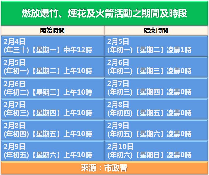 燃放爆竹、煙花及火箭活動之期間及時段