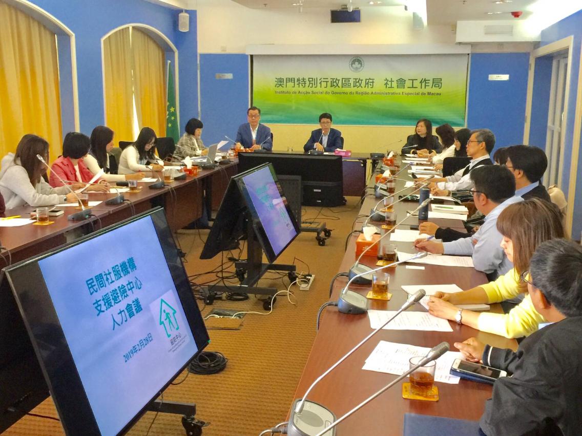 為完善各區避險中心的人力資源分配,社會工作局自2018年邀請了澳門基督教新生命團契、聖公會澳門社會服務處及澳門基督教青年會三間社會服務機構參與協作,並於去年9月超強颱風「山竹」襲澳時間,各社服機構的人員發揮了重要的支援作用。2019年,社會工作局再獲多間社服機構加入協作行列,包括有澳門工會聯合總會、澳門婦女聯合總會、澳門明愛和澳門循道衛理聯合教會社會服務處。