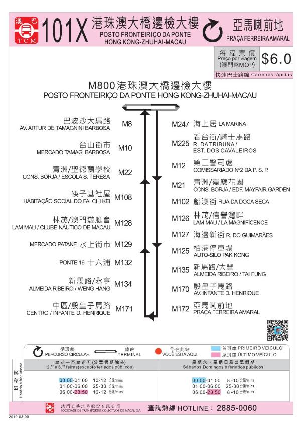 當中,九澳聖母馬路九澳戒毒康復治療中心附近路段新增一巴士站,中文名稱為“九澳七苦聖母小堂”站,葡文名稱為“IGREJA DE NOSSA SENHORA DAS DORES (KÁ HÓ)”,21A路線由3月9日(周六)首班車起新增停靠該站。同一時間,101X路線新增停靠“青洲/聖德蘭學校”站,以便利乘客往返港珠澳大橋澳門口岸和青洲區。