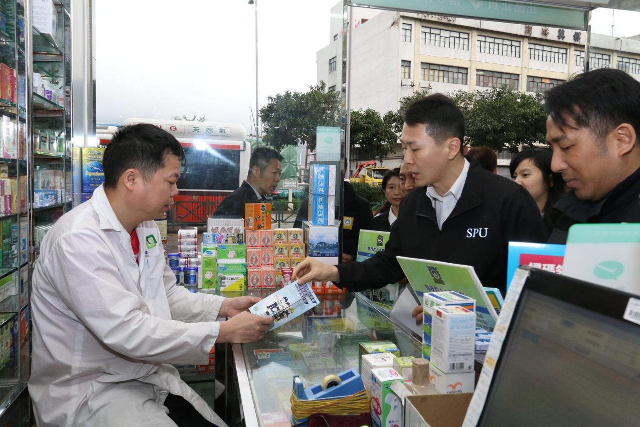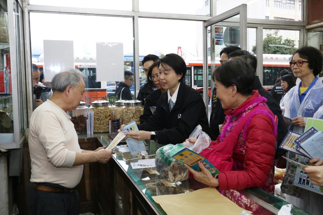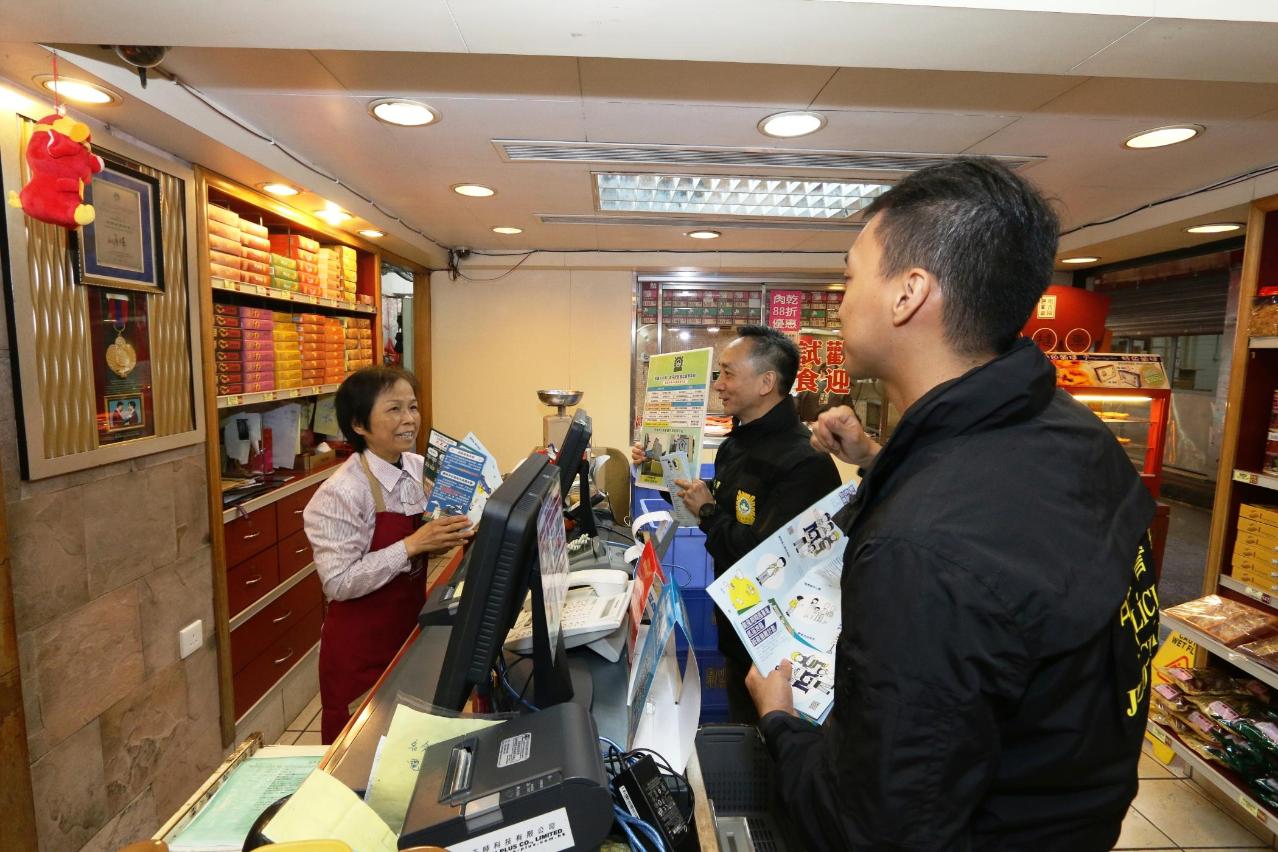 隨後,一行人前往十月初五日街、沙欄仔及司打口一帶低窪地區,向居民和商戶宣傳風暴潮撤離計劃的內容及注意事項,並向他們派發相關宣傳單張及防災知識小冊子,介紹民防訊息的接收渠道。兩局人員再三提醒居民及商戶,當颱風期間風暴潮來襲,導致低窪地區嚴重水浸時,應儘早離開地下室及地下停車場,並按照民防單位制定的安全撤離路線前往就近的避險中心或安全避險地方;呼籲他們平日須存放適量的防災及生活用品,並須留意有關用品的有效日期。