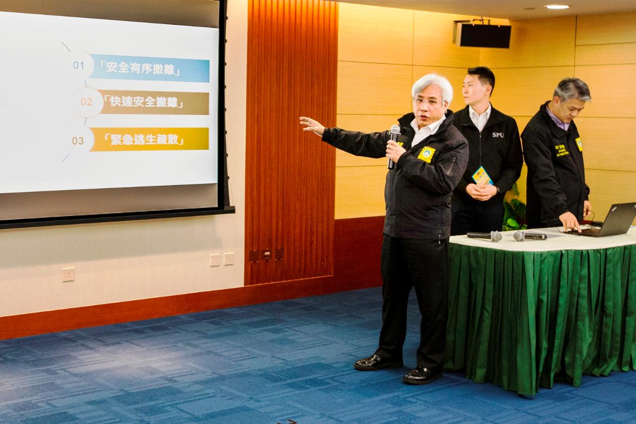 警察總局及司警局將繼續優化執行撤離計劃的工作,到社區向居民宣傳撤離計劃內容,提高居民對計劃的認識,以保障居民的生命及財產安全。