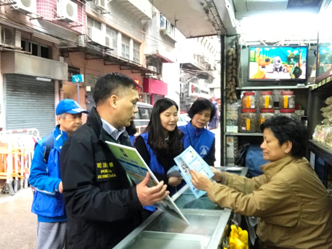 去年強颱風“山竹”襲澳,特區政府啟動“颱風期間風暴潮低窪地區疏散撤離計劃”,民防單位高效執行計劃,有效保障居民生命安全。因應颱風季節即將來臨,為提醒居民及早做好應對準備,警察總局統籌司法警察局,聯同“司警局大廈防罪之友”會員,前往易受風暴潮影響的低窪地區,向居民及商戶宣傳防災避險資訊,講解撤離計劃的內容及注意事項,加深居民對計劃的瞭解。