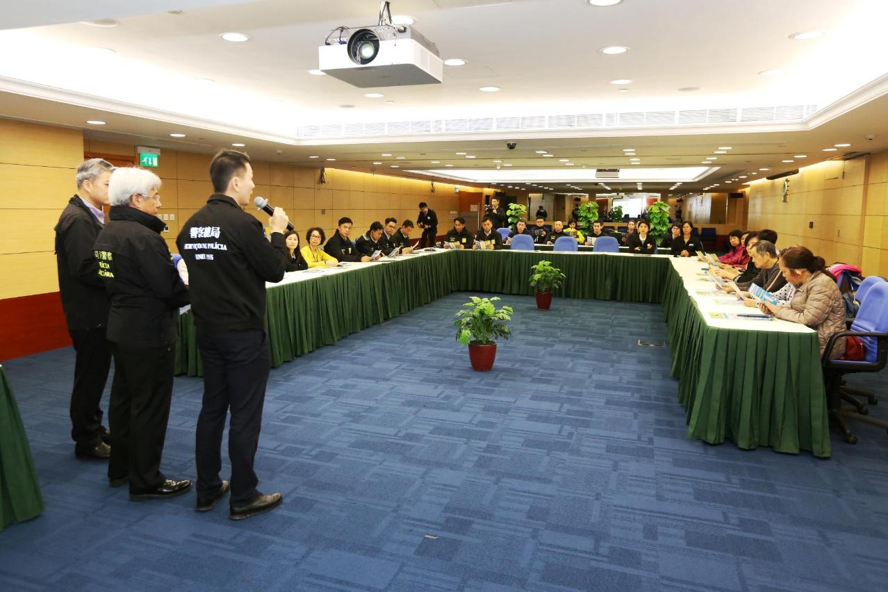3月7日下午,警察總局蔣少鑫警司及6位代表,聯同司警局情報及支援廳廳長馮浩賢、多位撤離小隊隊長和社區警務及公共關係處人員,以及“司警局大廈防罪之友”會員,於司警局總部大樓進行風暴潮撤離計劃宣傳工作會議,蔣少鑫警司及馮浩賢廳長分別介紹了撤離計劃的資訊及是次宣傳工作的安排,並希望透過“司警局大廈防罪之友”會員將有關撤離計劃的資訊傳遞給更多會員,大家共同做好防災準備。