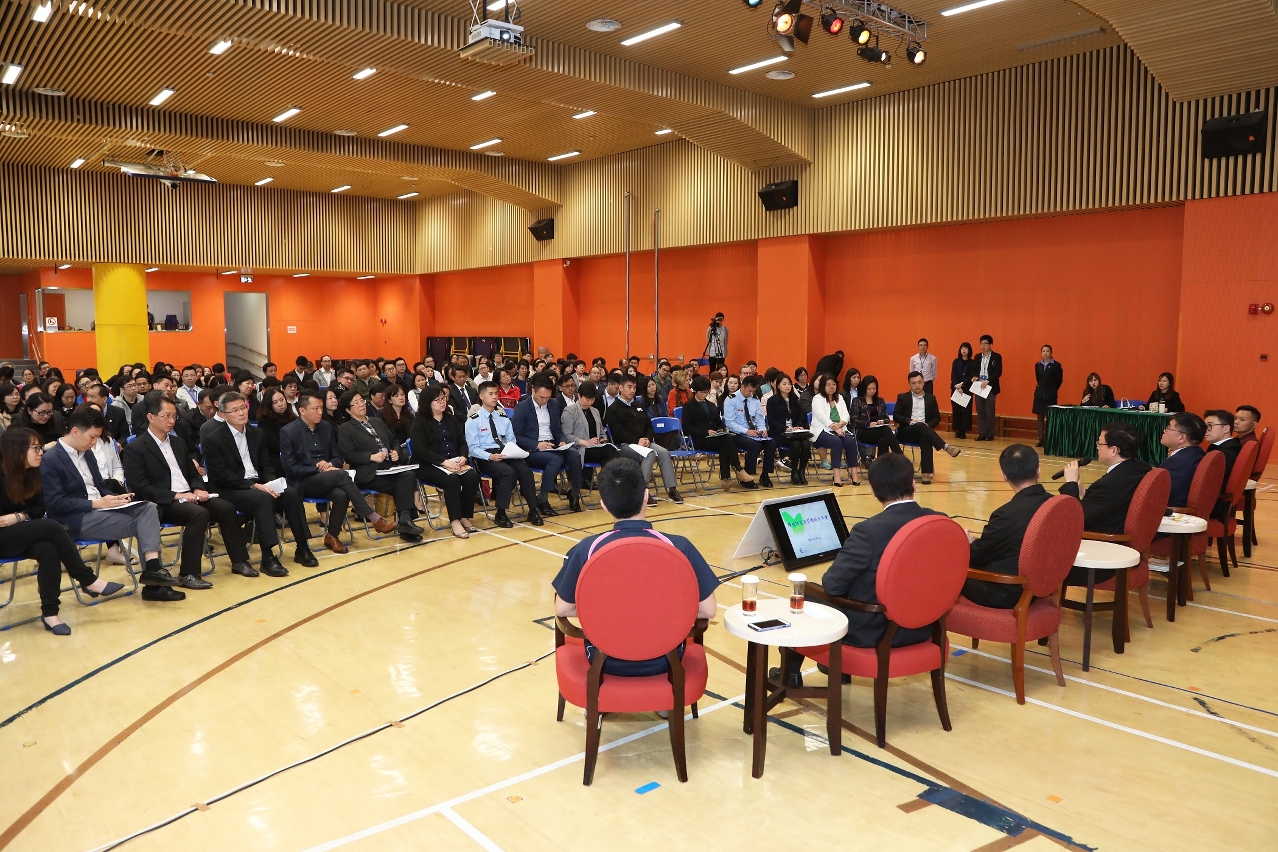 為了讓學校分享防災演習的經驗,提升演習成效,教育暨青年局於2019年3月14日下午假何東中葡小學一樓綜合運動室舉行“學校防災演習總結分享會”。教青局局長老柏生、副局長梁慧琪及龔志明,警察總局警司范家華、副警司張志輝,治安警察局警長陳曉宇,消防局副一等消防區長李梓豪、副消防區長張志明,地球物理暨氣象局氣象監察中心主任黃振星,教青局主管及77所學校領導和相關工作人員逾220人出席了分享會。