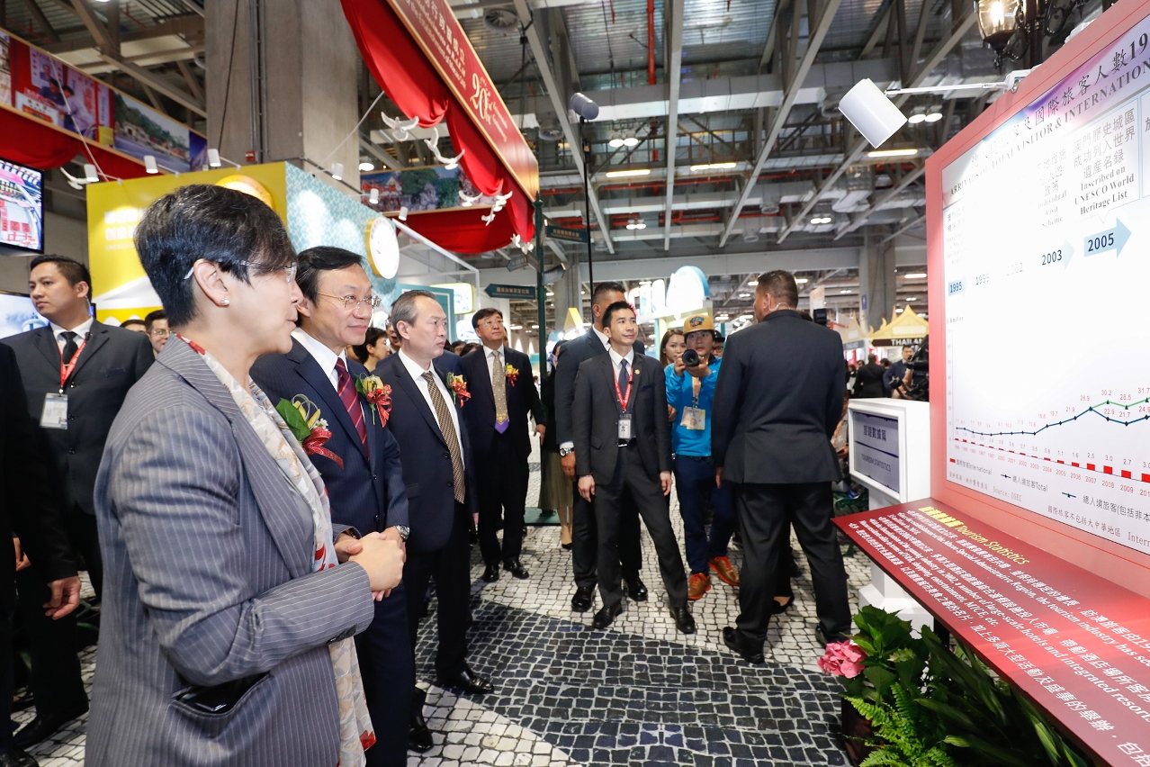 《共慶回歸二十載 繽紛多彩澳門遊》特展開館儀式緊接旅博會開幕禮舉行。澳門特別行政區政府社會文化司司長譚俊榮、中央人民政府駐澳門特別行政區聯絡辦公室副主任姚堅、中華人民共和國外交部駐澳門特別行政區特派員公署副特派員袁恒革、中華人民共和國文化和旅遊部港澳台辦公室滿宏衛巡視員、澳門特別行政區政府旅遊局局長文綺華及澳門旅行社協會會長劉雅煌主持開館儀式。