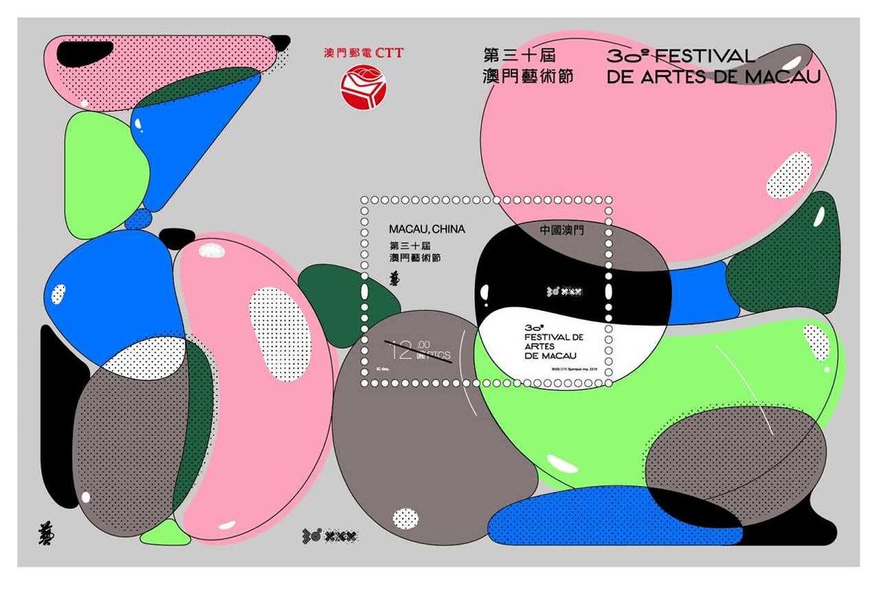 由郵電局發行的第三十屆澳門藝術節精美郵品,包括郵票、小型張以及首日封等。郵品中的4枚郵票,特別沿用過往藝術節的主視覺設計,以彰顯今年澳門藝術節“致敬經典”的主題。而小型張使用第三十屆的主視覺設計,以充滿律動感的運動體,構築一個紙上的無限空間,其中更隱含“30”字樣,以誌三十周年紀念。市民凡於開幕當晚現場購買有關郵品,即可免費獲贈由文化局設計的第三十屆澳門藝術節精美紀念封套乙份。數量有限,送完即止。