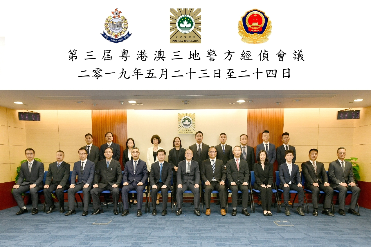 第三屆“粵港澳三地警方經偵會議”於5月23及24日在司法警察局總部大樓舉行,廣東省公安廳及轄下的廣州、珠海市公安局經偵部門,香港警務處商業罪案調查科,以及司警局博彩及經濟罪案調查廳、國際刑警組織中國國家中心局澳門支局,合共三十名代表出席會議。會議期間,粵港澳三地警方代表共同商議深化情報交流和警務合作,打擊跨境經濟犯罪。