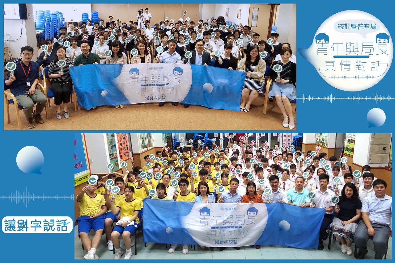 統計暨普查局楊名就局長分別於5月16日及21日走訪培道中學和培正中學,進行“青年與局長真情對話 -《讓數字說話》”交流會,與200多名學生分享統計數據知識,鼓勵同學們培養科學思維、透過統計數字認識世界。