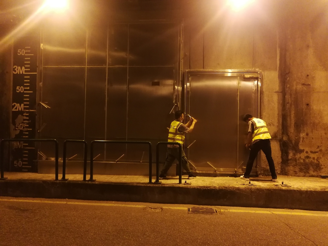 管理公司人員在關閘總站通往停車場之通道安裝水密門