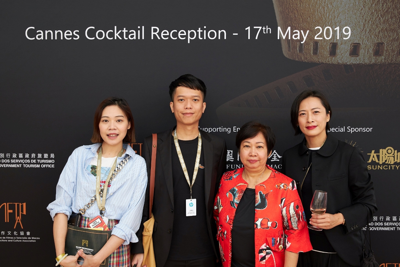 • 影展籌備委員會秘書長暨澳門影視製作文化協會理事長陳麗斯(右二)、影展電影市場總監吳蕙君(右一) 、澳門導演周鉅宏(左二)、澳門電影監製黃婷婷(左一)赴法國參加“康城影展”活動
