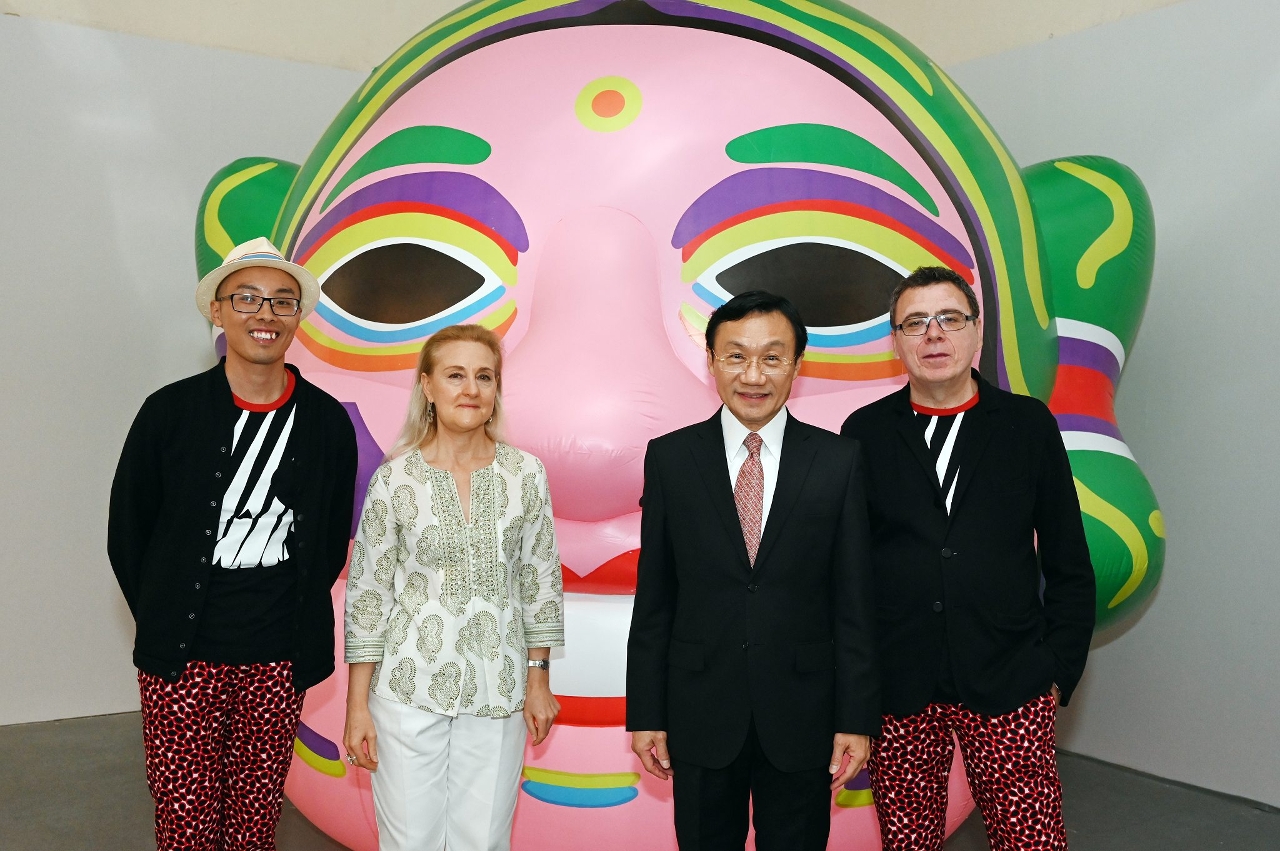 是次展覽展出來自比利時布魯塞爾的當代藝術組合“東波西波”(Benoit+Bo)取名為“大頭娃娃”的燈籠裝置作品,大頭娃娃用多種語言述說富含詩意、帶有傷感情調的文字,以表達出世界藝術和人類情感的普遍性,燈籠裝置旁亦擺放著象徵愛情符號的霓虹燈裝置。展覽同時也展示一系列稱為“門神”的數碼打印作品,作品創作參考了中國文化裡的“門神”,經藝術家巧妙使用新技術,重新闡釋“擁有護佑功能的圖畫”的傳統觀念。“東波西波”的作品通過攝影將不同空間重新組合,以聲音和不同語言進行敍述,並運用數碼科技呈現各種混合的文化因素,反映出兩位藝術家的無國界視野。此外,同樣由“東波西波”創作之大型當代藝術作品“開心大頭”,在舊法院大樓對開之區華利前地休憩區歡笑迎賓,把濃厚的藝文氣氛由室內的展覽館帶到戶外空間,遍佈全城。