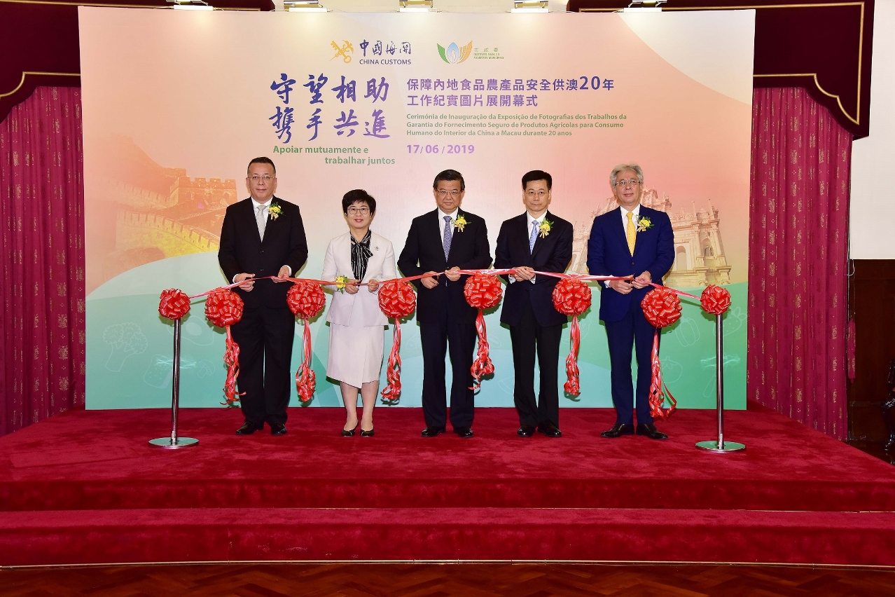 由國家海關總署及澳門特別行政區市政署聯合主辦之“守望相助,携手共進─保障内地食品農產品安全供澳20年工作紀實圖片展”於6月17日在市政署大樓禮堂開幕,以加深公眾對內地供澳食品的安全監管及穩定供應方面的瞭解,以及特區政府保障本澳食品安全的措施。