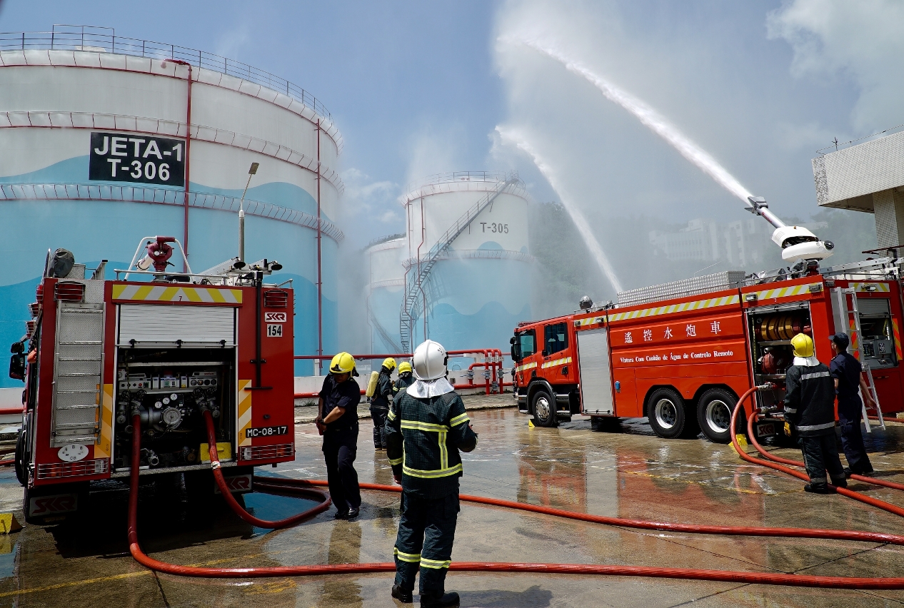 為加強九澳油庫在發生事故時的應急工作及協調溝通能力,消防局於本年6月28日,協助澳門油庫管理有限公司在九澳油庫內舉行火警疏散演習,從而測試消防局與九澳油庫之間的協調機制,提高事故時的救援效率。