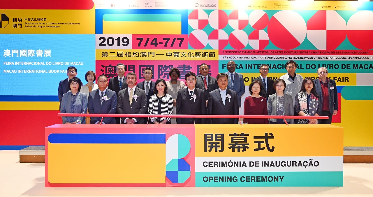 由澳門特別行政區政府文化局與中國圖書進出口(集團)總公司合辦的第二屆“相約澳門──中葡文化藝術節”澳門國際書展2019,於今日(7月4日)上午10時30分假澳門威尼斯人金光會展A館舉行開幕儀式,由中央人民政府駐澳門特別行政區聯絡辦公室副主任薛曉峰;澳門特別行政區政府社會文化司譚俊榮司長代表、文化局局長穆欣欣;中國出版集團公司董事長譚躍;葡萄牙駐澳門總領事館總領事歐冠溢(Dr. Paulo Cunha Alves);中葡論壇(澳門)常設秘書處秘書長徐迎真;澳門基金會行政委員會主席吳志良;中華人民共和國外交部駐澳門特別行政區特派員公署政策研究室副主任蔣瀟帆;澳門旅遊學院副院長甄美娟及澳門特別行政區政府旅遊局執照及監察廳廳長陳露等主禮。