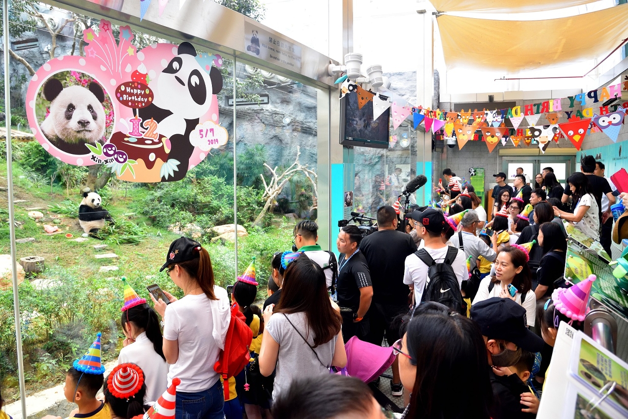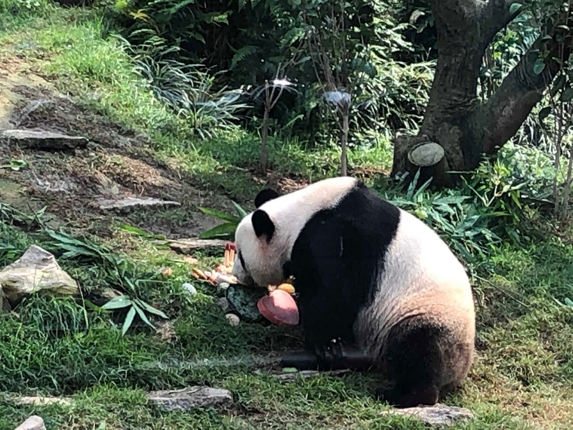 市政署在石排灣大熊貓館為大熊貓“心心”慶祝十二歲生日,氣氛溫馨熱鬧。