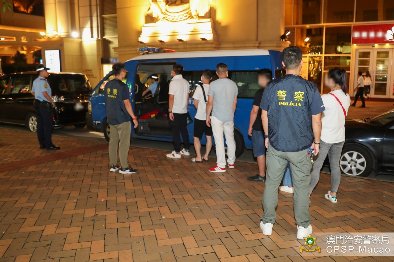 治安警察局持續進行具針對性的反罪惡行動,以維護本澳良好的治安環境。於7月5日晚上至6日凌晨,治安警察局澳門警務廳、海島警務廳及交通廳共派出76名人員,分別在新口岸及路氹金光大道一帶進行反罪惡巡查,聯同警犬組人員於氹仔各處巡查多間酒吧,以及在本澳多處進行查車行動,打擊犯罪及調查不法行為。
