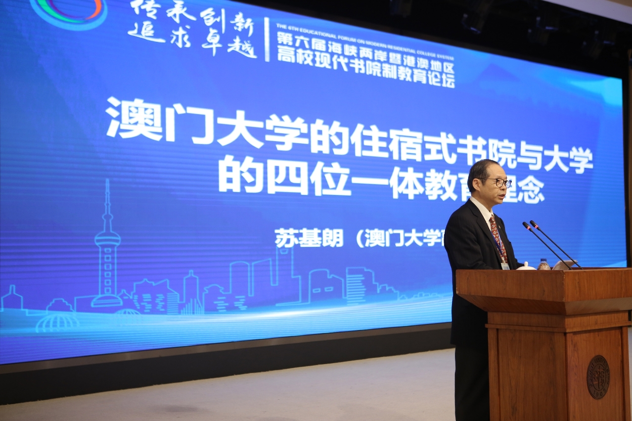 澳門大學師生代表團參與“第六屆海峽兩岸暨港澳地區高校現代書院制教育論壇",與來自海內外56所高校的380多名專家學者、師生代表共同探討高校現代書院制教育。澳大副校長(學生事務)蘇基朗表示,書院不是學生的宿舍,而是學生同輩與群體教育的重要學習平台。學做人、學專業、學通識,學怎麼把知識學以致用。澳大强調四位一體的教育理念,希望學生能夠在接受這四種教育的同時,把他們融會貫通。