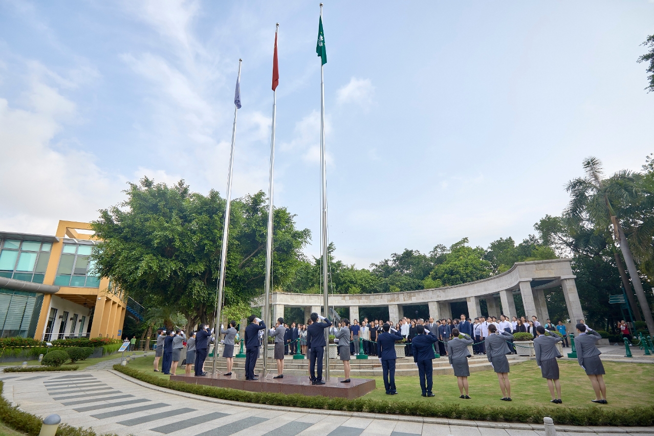 澳門旅遊學院於開學禮當天,在校園舉行升國旗儀式,旨在提高學生及教職員對國家的認同感,培養愛國愛澳精神。出席的師生約四百人。