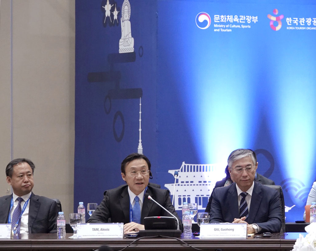 會議上,韓國文化體育觀光部長官朴良雨,日本文部科學大臣柴山昌彦、國土交通大臣石井啓一希望,加强文化與旅遊的融合;促進文化產業的發展;加快“東亞文化之都”建設和城市互動;藉中日韓三國舉行奧運會、冬奧會和殘奧會的契機,推動三國文化、旅遊的交流與發展;增進非物質和物質文化遺產傳承與保護的合作;創作更多交流渠道,讓三國青年文化藝術人才互學共進;強化放遊人才的培養;透過三國旅遊合作促進東北亞地區的穩定、和平與繁榮。香港民政事務局局長劉江華在發言中簡介了香港與日本、韓國的文化交流情況,並邀請日本、韓國繼續在香港舉辦各類文化活動,展示兩國的文化風采;香港商務及經濟發展局副局長陳百里表示,香港早前在東京舉行了粵港澳大灣區旅遊推廣活動,願繼續推動中日韓三國人民旅遊交流,促進民心相通。