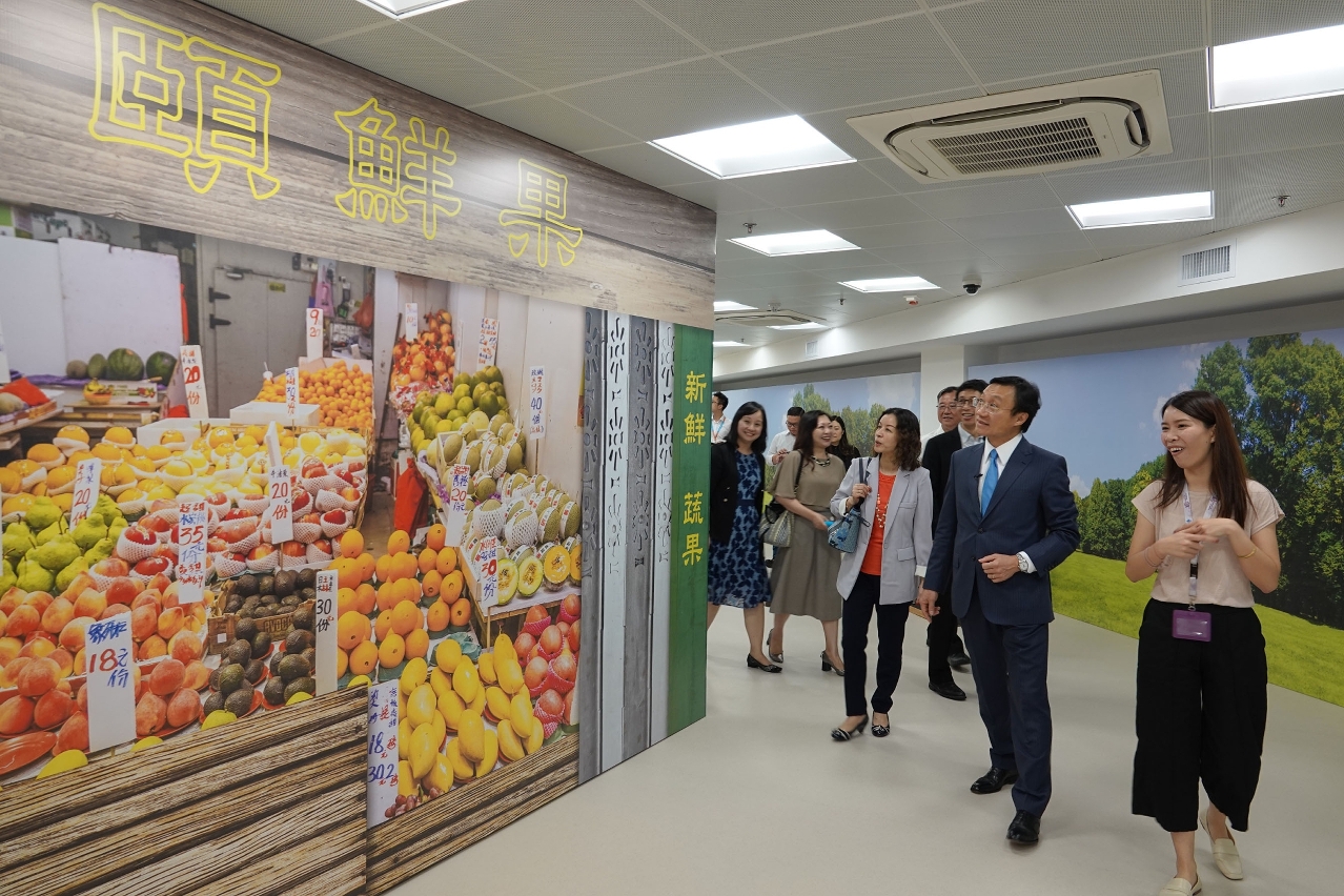 譚俊榮一行首先視察即將於本年第四季投入服務欣頤居護養院,該院位於氹仔東北大馬路社屋日昇樓,由社會工作局資助,澳門循道衛理聯合教會社會服務處負責運作,投入使用後可提供144個服務名額,令本澳安老院舍宿位增至約2400個。