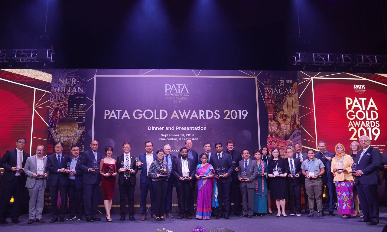 亞太旅遊協會金獎晚宴及頒獎禮19日在努爾蘇丹舉行。旅遊局已連續24年支持此項旅遊交易會的年度亮點項目,以推廣澳門旅遊及促進亞太地區旅遊業的可持續發展。今年亞太旅遊協會共頒發4項大獎及29項金獎,表揚獲獎機構及人士在市場推廣、環境保護、企業社會責任、文化遺產、教育培訓、推廣媒體及旅遊媒體等七大領域方面的傑出表現。局長文綺華擔任頒獎嘉賓並致歡迎辭。