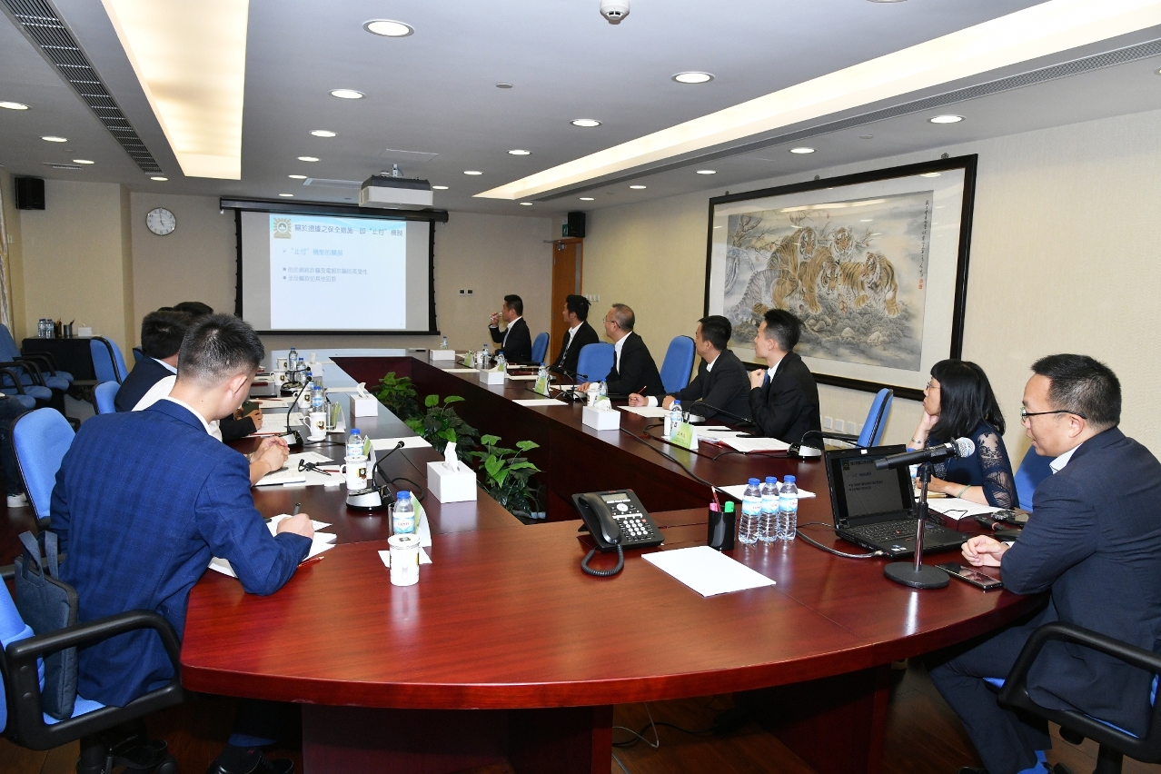 會議在司警局總部大樓舉行,廣東省公安廳新型犯罪偵查處副處長朱嘉偉與珠海市公安局刑事警察支隊支隊長牛岩軍等一行六人,與司警局博彩及經濟罪案調查廳廳長梁文照、經濟罪案調查處處長陳楚民,以及經濟罪案和資訊罪案調查部門的主管人員舉行會議。