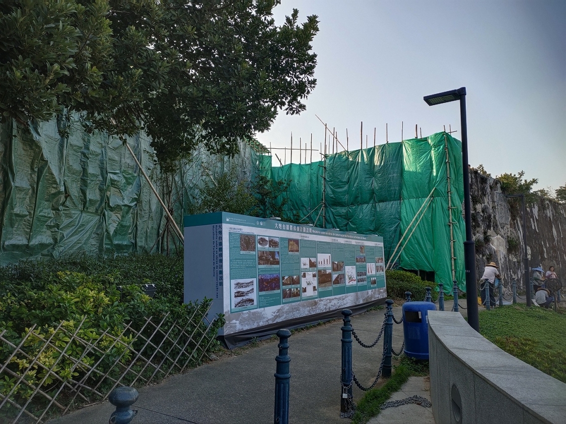 文化局現時分階段對大炮台牆體展開全面修復,工程計劃分三期進行。第一期修復工程預計於明年2月完成,主要對炮台東側牆體進行修復和維護。為保障公眾安全,修復期間炮台東側牆體的部分區域將有臨時圍封措施,但不影響行人通過,不便之處,敬希見諒。