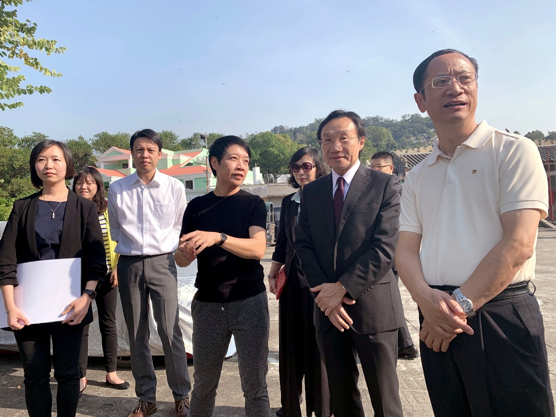 下午,顧玉才一行與譚俊榮與文化局領導前往路環船舖街瞭解考古發掘成果,並參觀天后古廟,聽取有關本澳的廟宇文化特色及保育修復工作的介紹。其間,譚俊榮表示,期盼未來在國家文物局的支持下,定期邀請內地文物範疇專家來澳舉行培訓及講座,尤其面向青少年傳授更多文物保護的觀念與知識,依託國家文物局及有關專家的指導,澳門將繼續推進與開展文化遺產保護領域的各項工作,並接受國家文物局對澳門歷史城區的保護及管理工作的監督,以符合聯合國教科文組織世界遺產中心的要求。