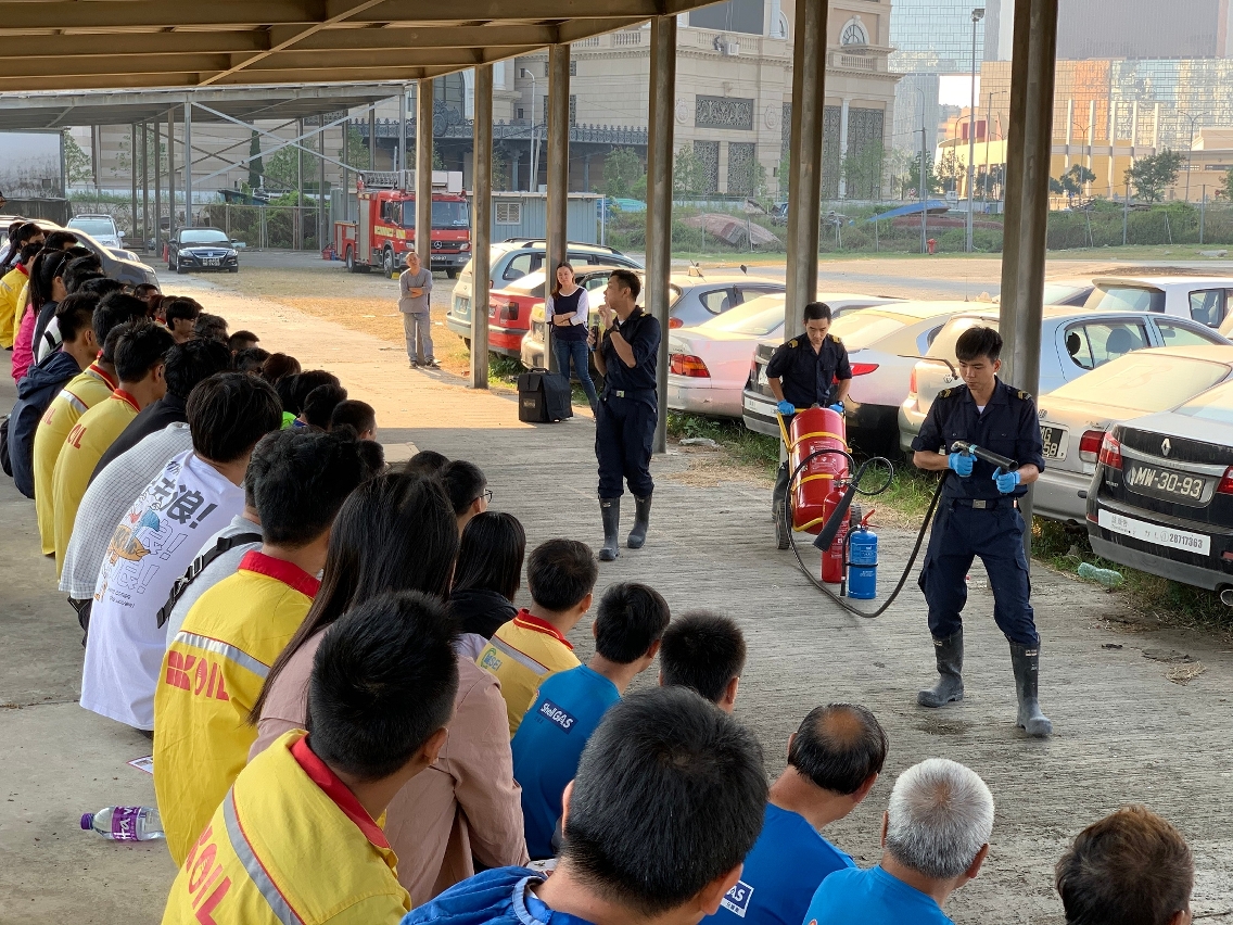 本局與澳門石油業商會有多年的合作經驗,每年定期為業界員工舉辦防火安全知識培訓課程。本年課程於11月8日在機場模擬訓練中心舉行,參與培訓的業界員工約有120人,首先由消防局人員向從業員講解油品處理的正確方法及注意事項、燃料加注站的安全指引、燃氣爐具的安全使用指引,其後介紹燃燒理論、常見火警危機、滅火的基本原理、發生火警時的應變措施及逃生技巧,以及如何正確操作和安全使用滅火筒及消防喉轆,最後由業界員工親身操作滅火筒及消防喉轆撲滅火警。雙方表示日後將繼續加強合作及舉辦同類課程,共同促進澳門石油業的消防安全,營造良好安全的工作環境。